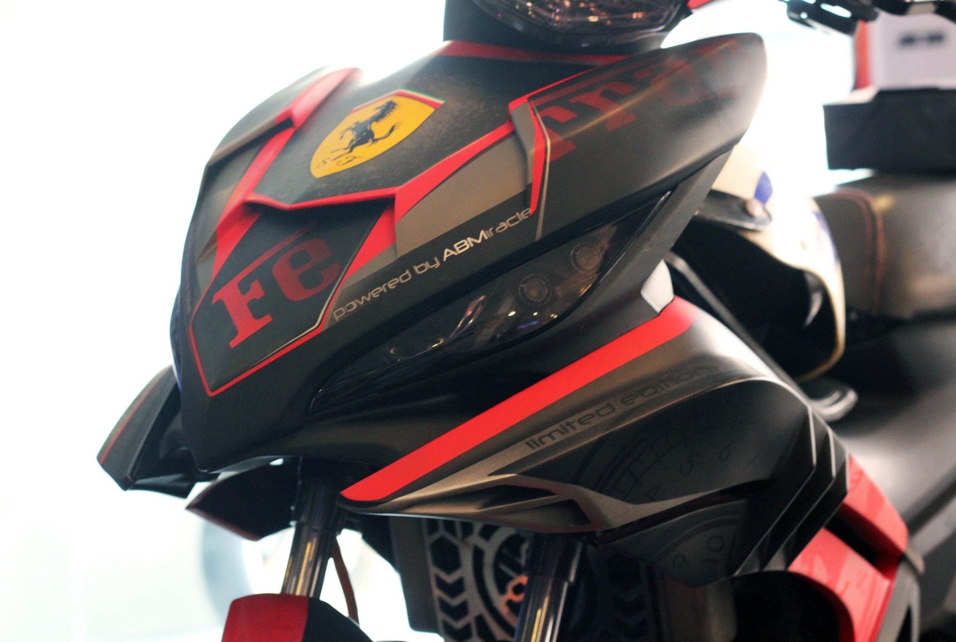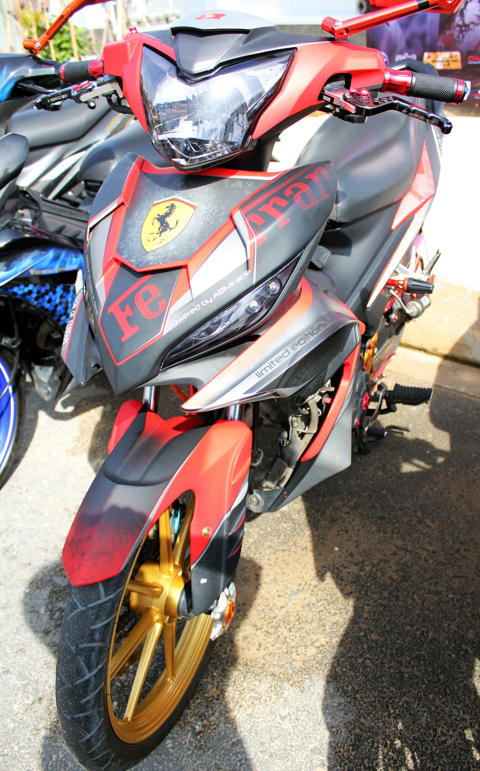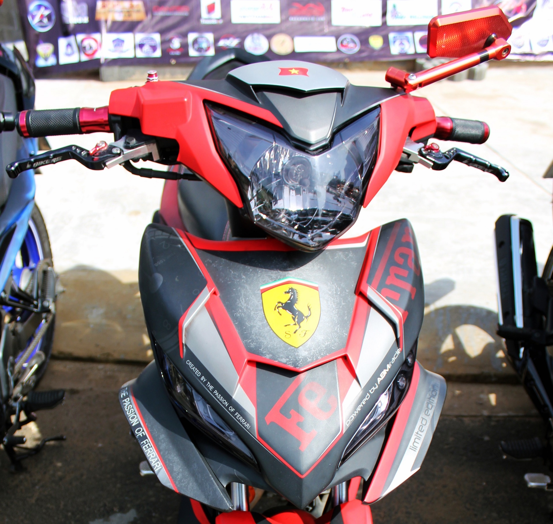 | Exciter Ferrari Enzo được chế lại mặt nạ, với những hốc hút gió lớn, logo ngựa chồm rất lớn được dán ở vị trí trung tâm. |