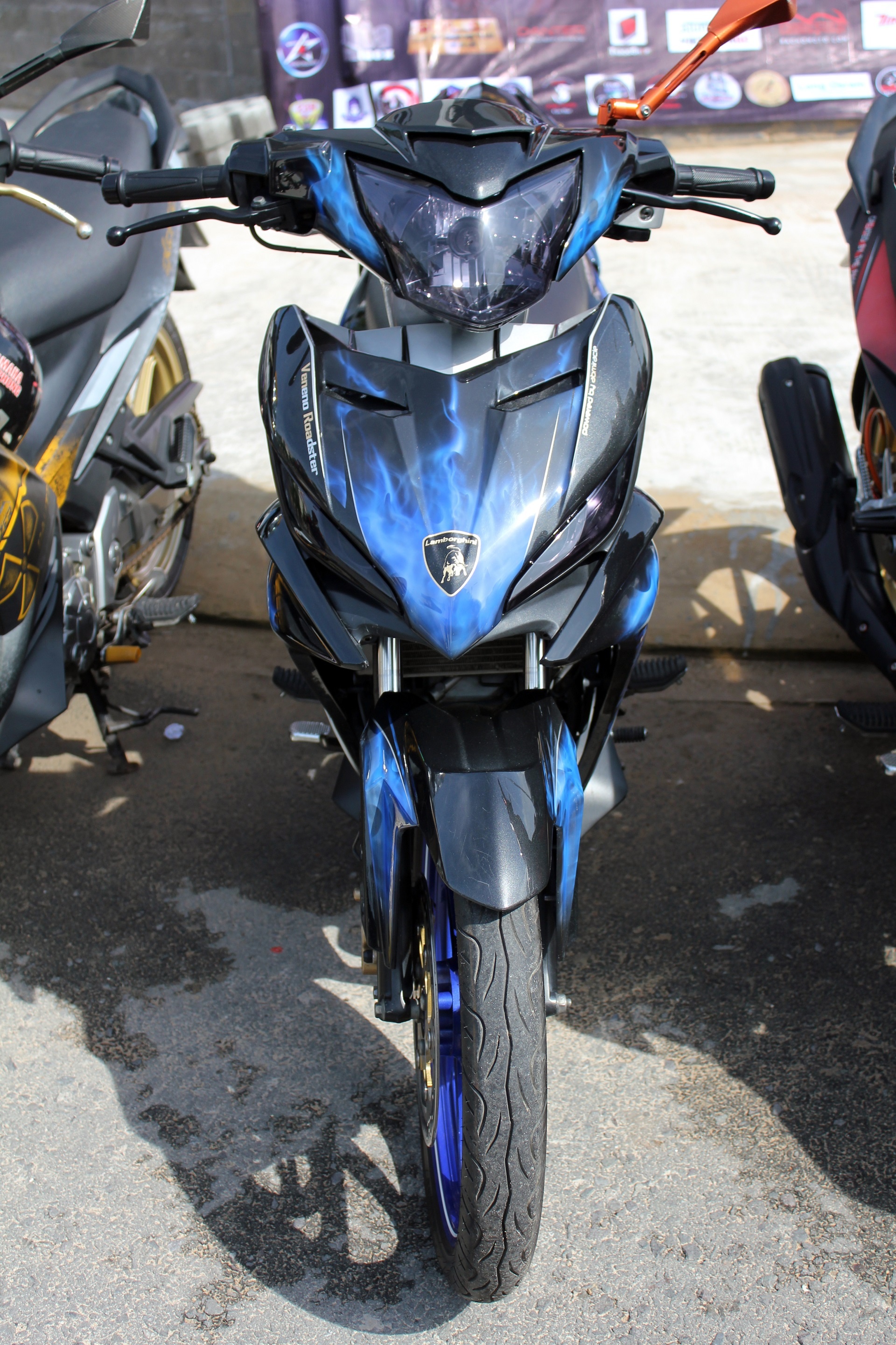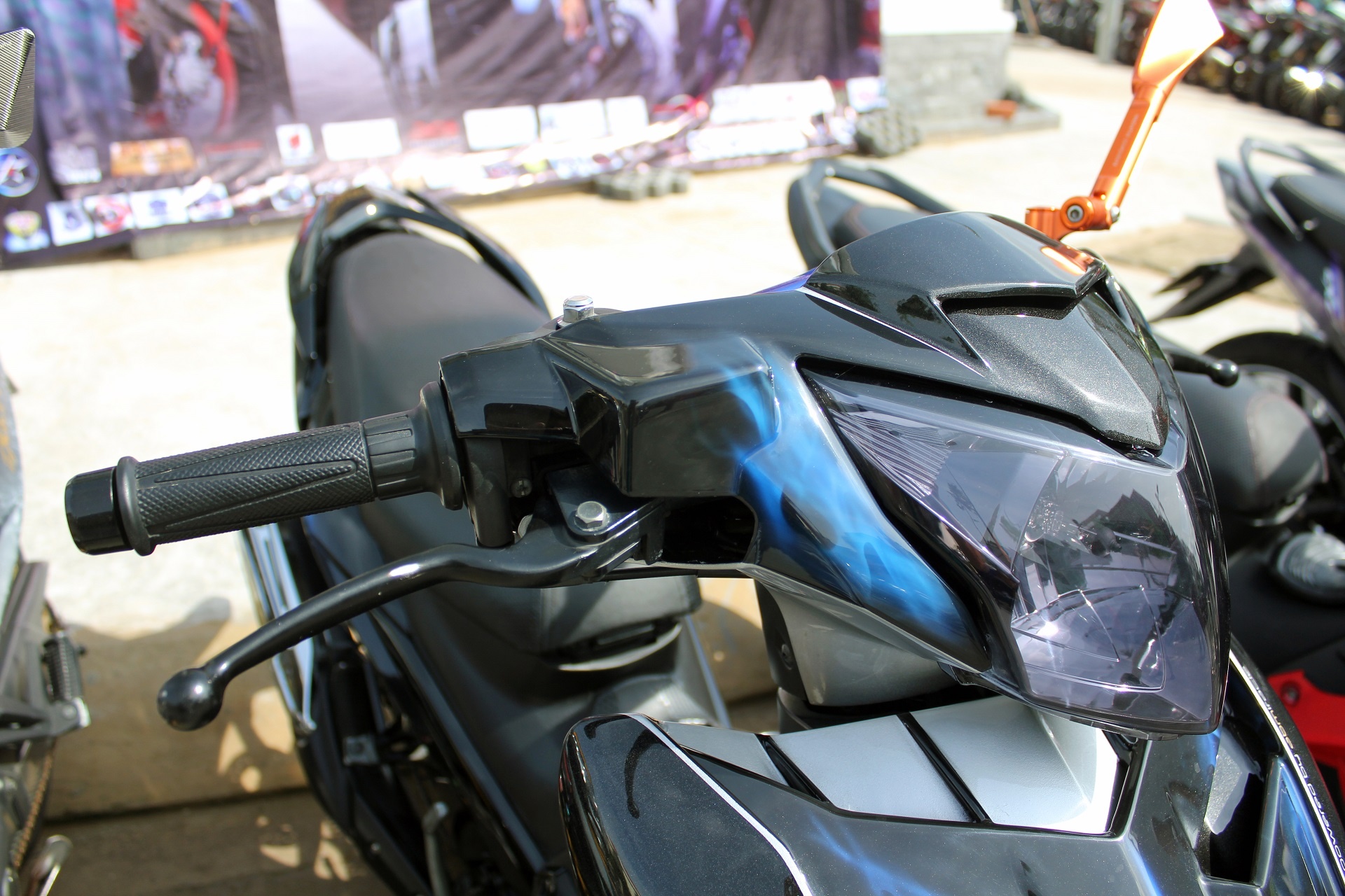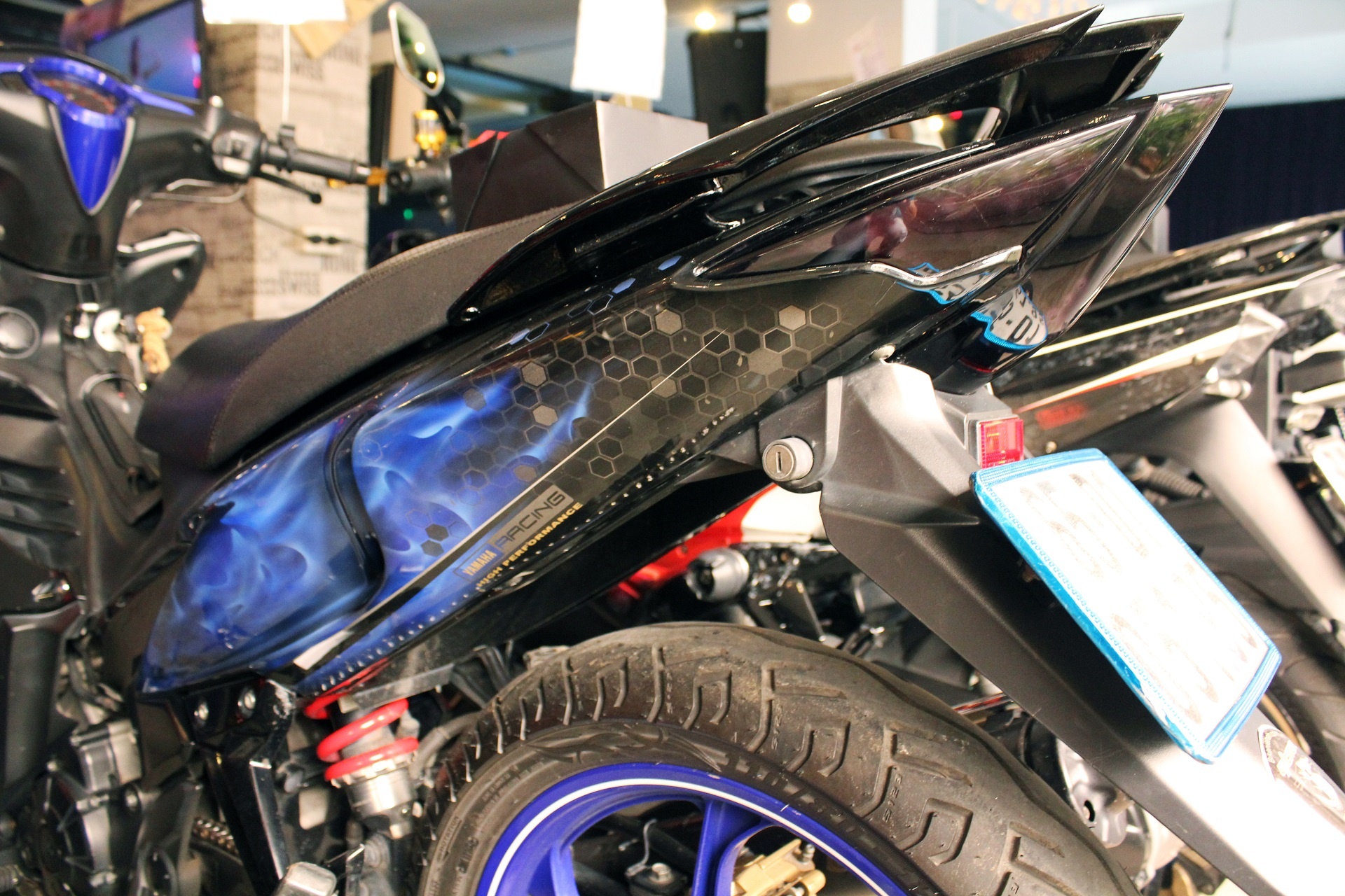 | Exciter Veneno được sơn airbrush chuyển nền bắt mắt với màu xanh chủ đạo. |