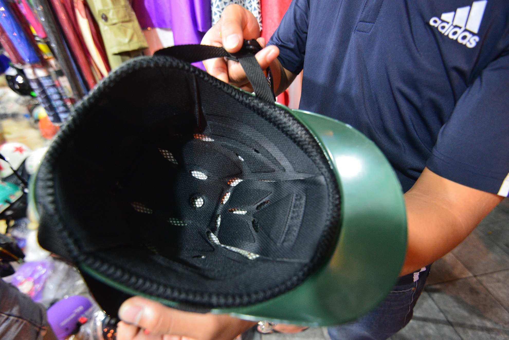 | Chiếc mũ tại cửa hàng trên phố Hàng Đậu có giá 250.000 đồng, người bán khẳng định là đủ 3 lớp và đạt chuẩn. Tuy nhiên, vị khách này vẫn bán tín bán nghi. |