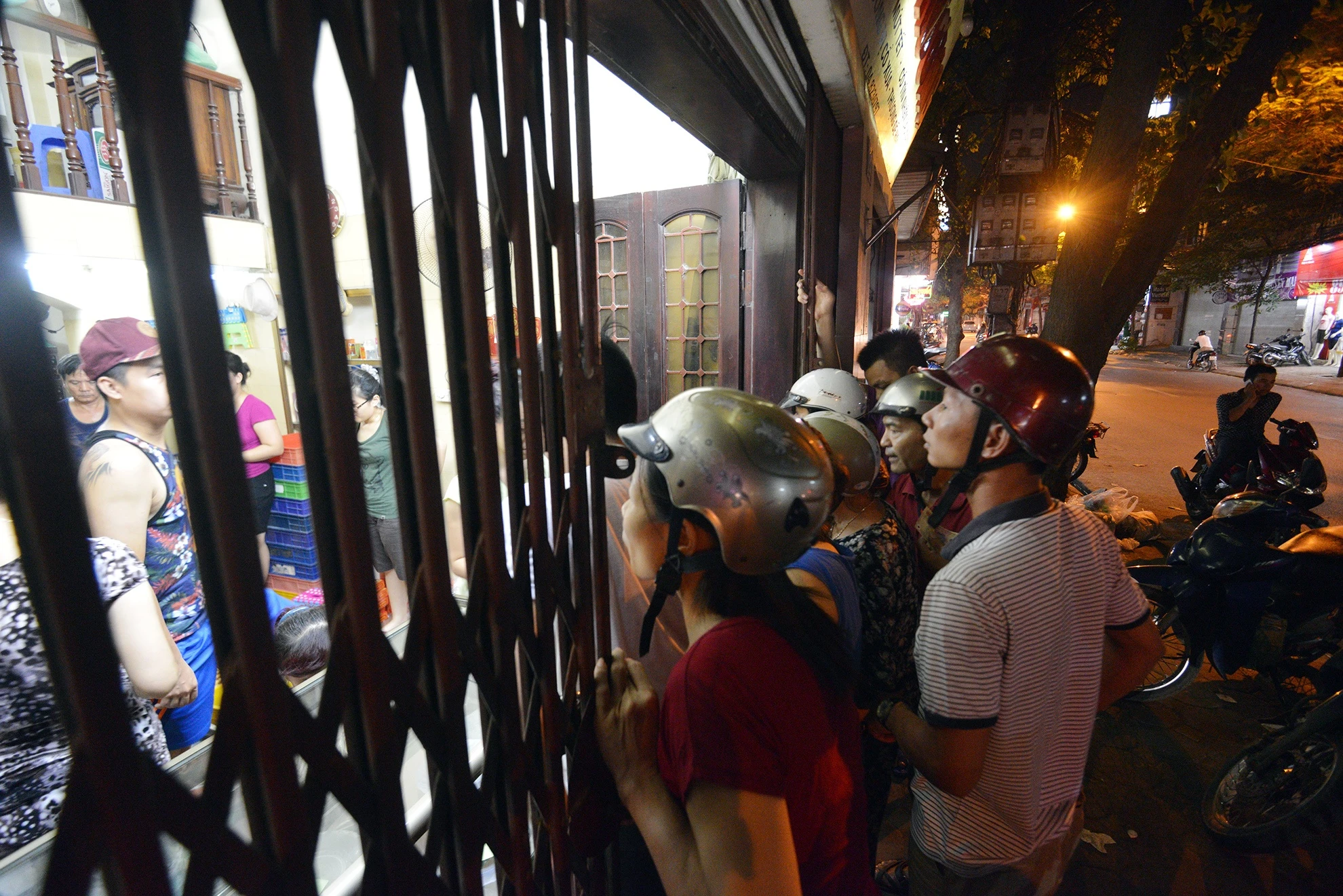 | 9h tối ngày 8/8, tuy cửa hàng đã đóng cửa nhưng nhiều người dân vẫn xếp hàng để mua. Chủ quán tuyên bố sáng 9/8 mới mở cửa phục vụ khách. |