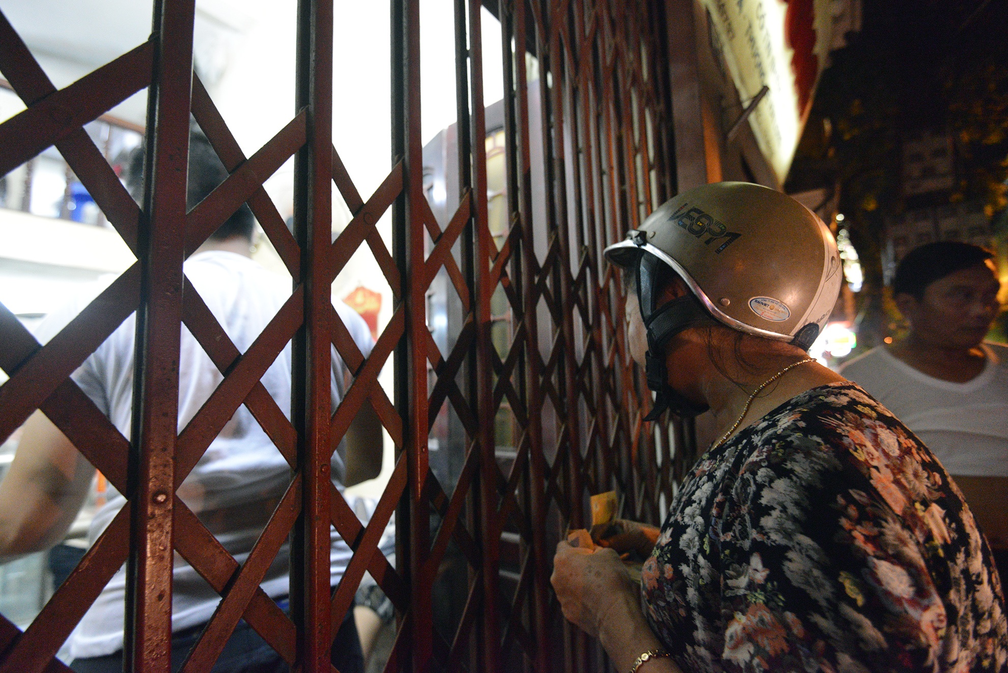 | Bà Nguyệt năn nỉ được mua bánh nhưng cửa hàng vẫn đóng cửa. Bà cho biết, năm nào mua tại cửa hàng này cũng phải xếp hàng, nhưng vì quen nên vẫn chấp nhận. |
