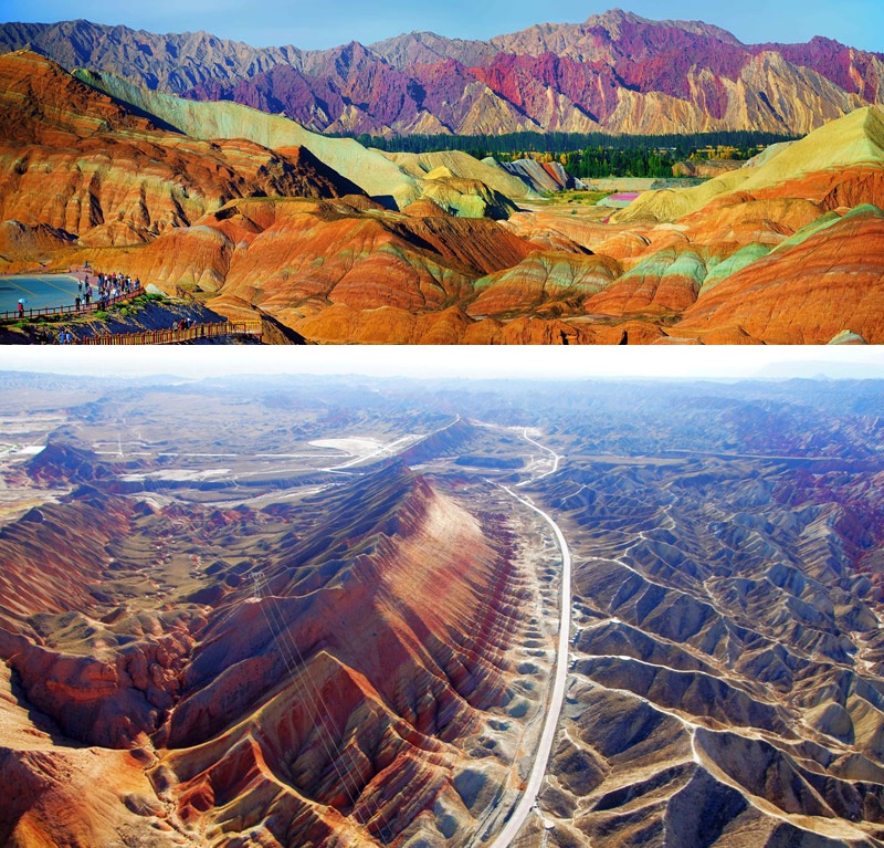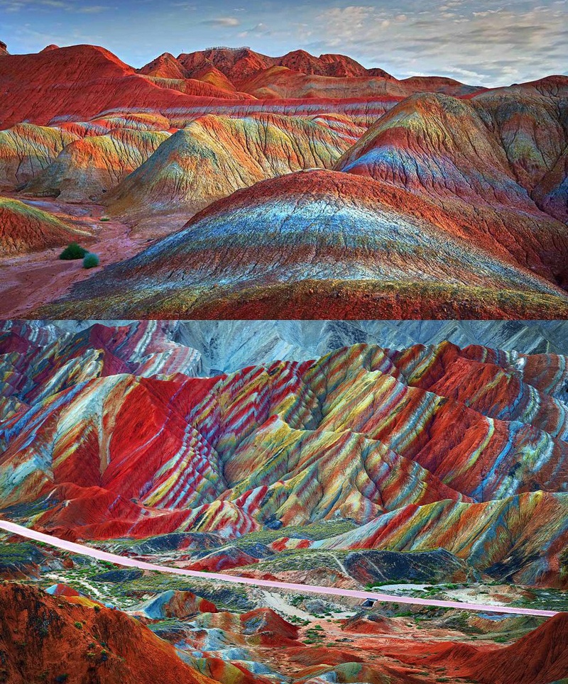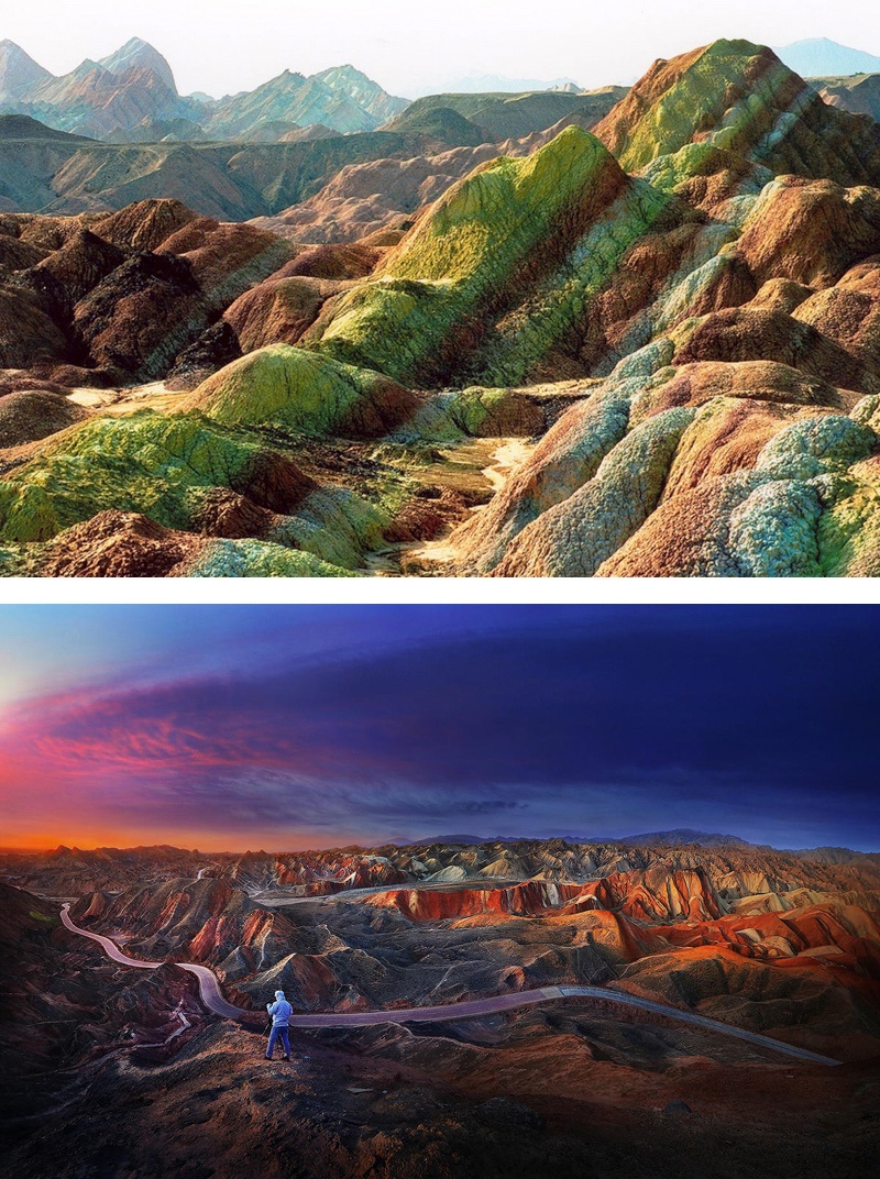 | Thoáng nhìn qua, những dãy núi đủ mọi hình thù, kiểu dáng và màu sắc này sẽ khiến bạn liên tưởng đến khung cảnh thần tiên không có thật ở trần gian, hoặc cho rằng chúng hoàn toàn chỉ là tác phẩm của Photoshop. |