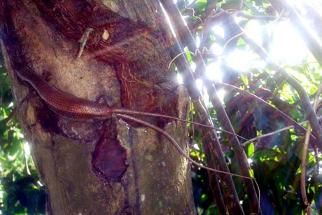 | Con thằn lằn hai đuôi anh Đức bắt được trong khi đang làm vườn. |