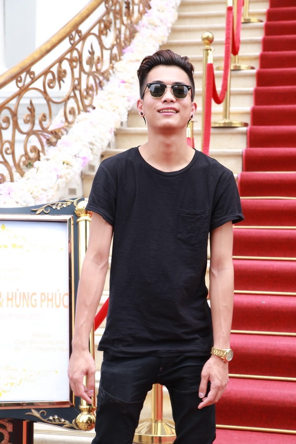 | Tới dự cùng hai hot girl Hà thành là Big Daddy. Chàng trai trông cá tính với bộ trang phục màu đen. |