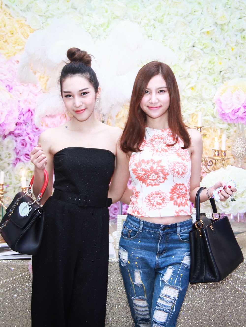 | Hot girl Emily, Hạnh Sino có mặt tại phòng cưới từ sớm để chúc mừng cho đôi trẻ. Cặp bạn thân diện trang phục quyến rũ, khéo léo để lộ đôi vai thon và nước da trắng hồng của mình. |