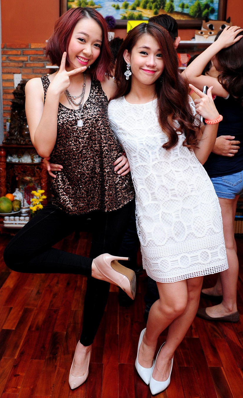 | Hot girl Mlee - gà cưng một thời của Ngô Thanh Vân cũng xuất hiện tại buổi khai trương với phong cách cá tính như mọi khi. Cô đang vướng nghi án hẹn hò hot boy Cường Seven. Ngọc Thảo và Mlee chơi thân khi cả hai cùng đóng phim Tiệm bánh hoàng tử bé. |