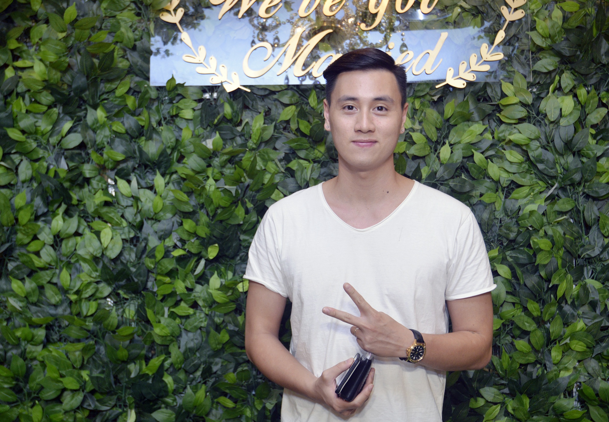 | Kiên Hoàng là một trong những khách mời đến dự hôn lễ từ khá sớm. Anh diện trang phục giản dị với áo phông và quần jeans. Chàng hot boy này cũng vừa lấy vợ cách đây không lâu. |