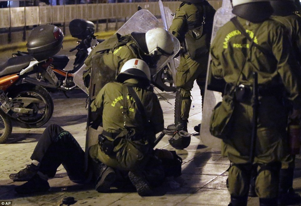 Cảnh sát cho biết, khoảng 50 người biểu tình quá khích bị bắt trong cuộc bạo động bên ngoài tòa nhà Quốc hội Hy Lạp. Ảnh: AP