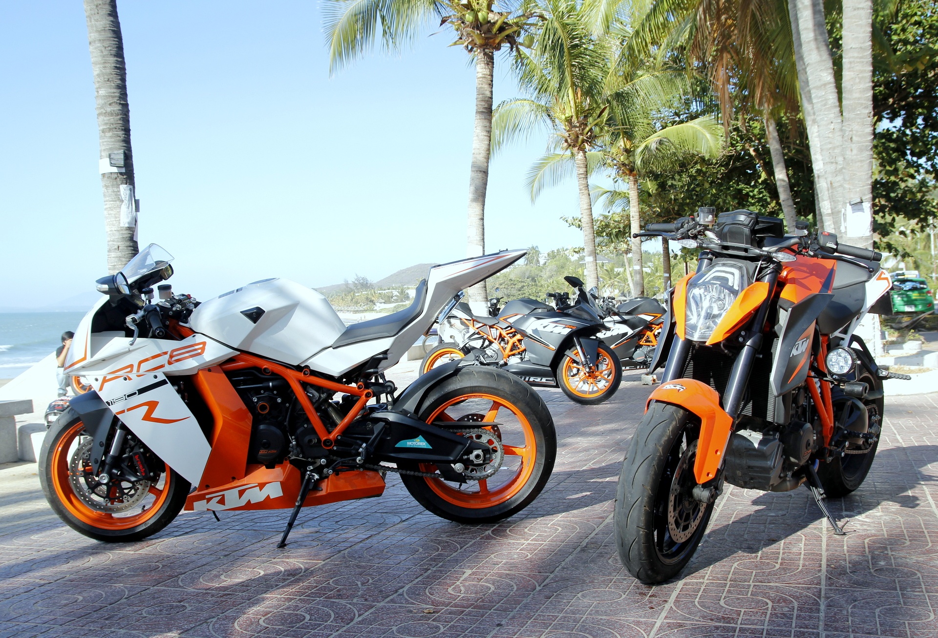 | Xuất hiện trong chuyến test ride lần này còn có sự xuất hiện của hai "ngôi sao" của hãng KTM. Đó là siêu mô tô KTM RC8R và KTM Super Duke 1290 R. |