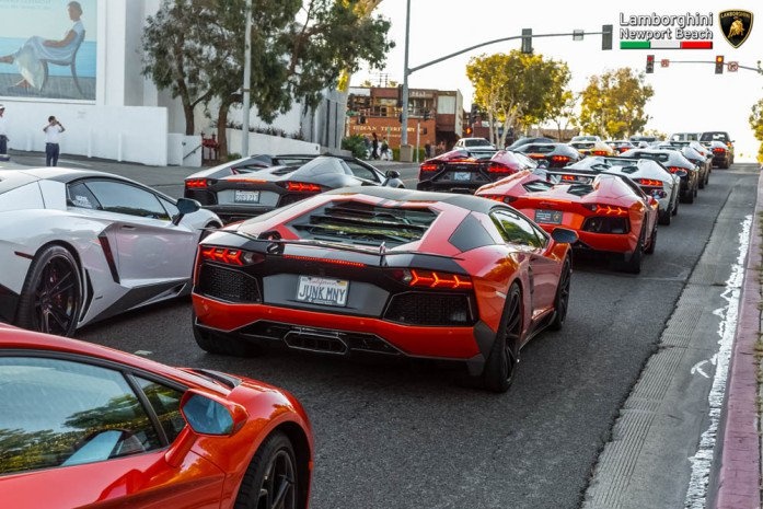| Sau khi tập trung tại đại lý Lamborghini Newport Beach, dàn xe diễu hành trên đường phố và kết thúc tại địa điểm ăn tối Mastro Ocean Club. |