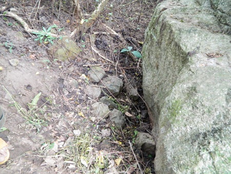 | Xung quanh chân tảng đá bị đào khoét để tìm kho báu. |