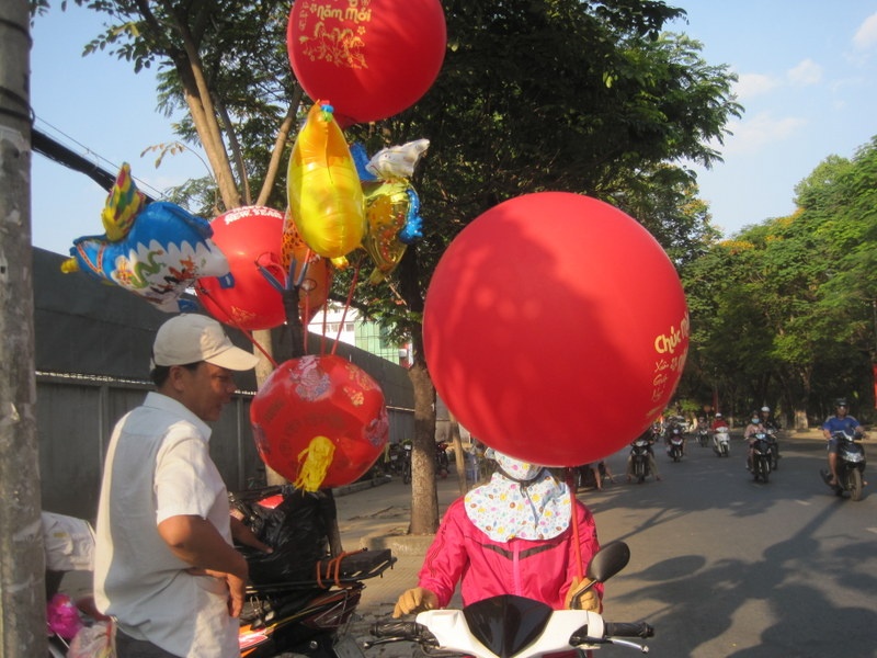 | Anh Thành (quê Nam Định) 5 năm rồi chưa về quê đón Tết. Anh cho biết, ngày Tết anh bám vỉa hè bán bong bóng kiếm tiền chứ không về quê. "Tiền tàu xe đắt đỏ, thôi thì để dành gửi về quê cho ông bà nuôi các con ăn học", anh tâm sự. |