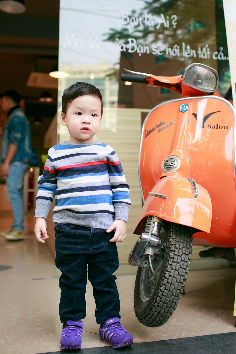 Cuối tuần vừa rồi, cậu nhóc Khải Minh được tháp tùng mẹ đi cắt tóc tại một salon trên đường Huỳnh Thúc Kháng - Hà Nội trong khi bố Khải Anh bận rộn với các chương trình truyền hình cho dịp Tết.