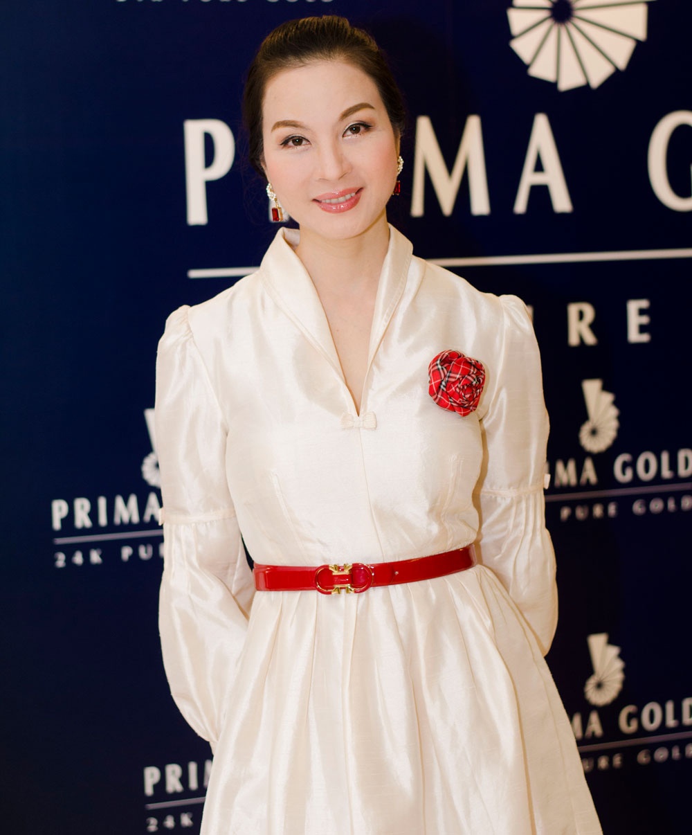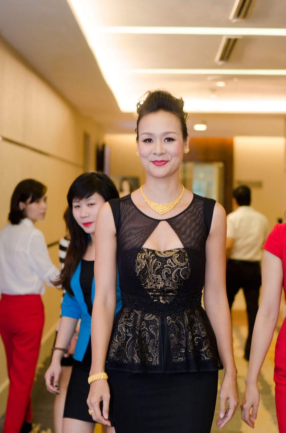 Quý bà Thu Hương là MC của buổi tọa đàm. Người đẹp gốc Hà Nội cũng là một doanh nhân có tiếng trong ngành truyền thông.