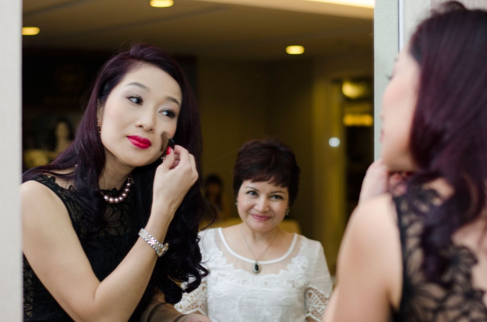 Cô tranh thủ chăm chút cho dung nhan trước khi bước vào sự kiện.