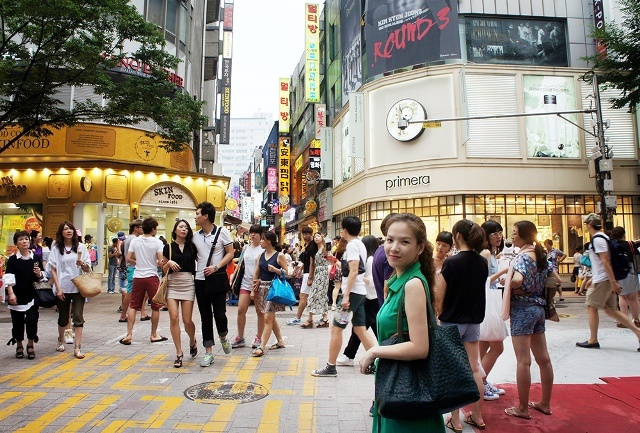 | MC "Dự báo thời tiết" cũng dành thời gian đi mua sắm để hiểu thêm về thị trường may mặc của xứ sở kim chi. |