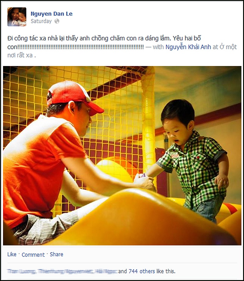 | Dù xa nhà nhưng Đan Lê vẫn thường xuyên cập nhật hình ảnh của con trai và ông xã trên trang cá nhân. |