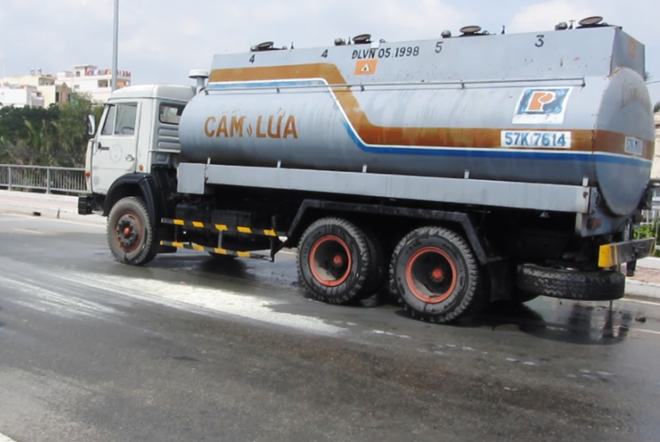 Vụ việc xảy ra vào trưa ngày 13/11 trên cầu Đa Khoa đường Nguyễn Thị Thập, P.Bình Thuận, Q.7, TP.HCM. Khi phát hiện chiếc xe bồn đang điều khiển bốc cháy giữa khu dân cư đông đúc, tài xế đã liều mình nhấn ga lái xe lên cầu Đa Khoa cách đó 100m mới dừng lại dập lửa.