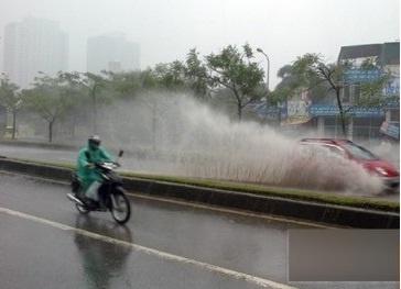 | Trời mưa phóng nhanh tạt nước vào người khác. |