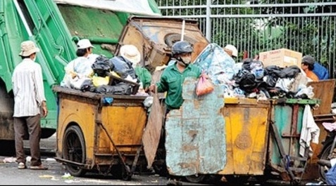 | Xe rác lượn phố vào giờ tan tầm. Đường đã đông, tắc nghẽn, xe rác to kềnh ngáng đường với mùi hương không hề dễ chịu. |