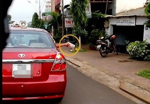 | Người đi ô tô vứt rác vào xe máy đằng sau. |