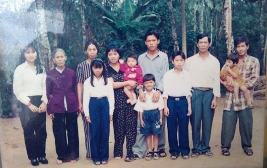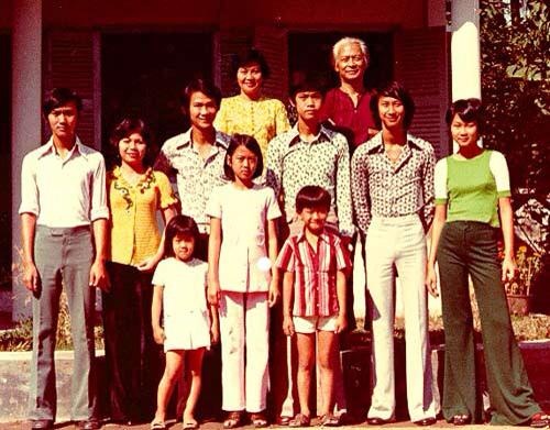 | Gia đình gồm 4 thế hệ 18 năm về trước. "Mốt thời trang thập niên 90 phải là quần thụng áo rộng (nam), áo cánh dơi (nữ), quần may bằng vải nhúng, áo vải lanh" - thành viên Đặng Thư cho biết. Ảnh: Trung Nguyen. |