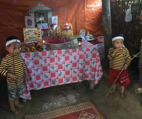 Gần đây, câu chuyện về hai anh em sinh đôi tên Nguyễn Bá Tuấn và Nguyễn Bá Đức (3 tuổi, ở thôn 10, xã Thanh Mỹ, huyện Thanh Chương, Nghệ An) chít khăn tang, chống gậy khi tiễn mẹ về nơi chín suối thu hút hơn 40.000 like (thích), 15.000 chia sẻ trên mạng xã hội.