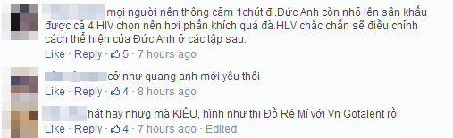 Về phía Đức Anh, sau khi phần thi của mình lên sóng, cậu bé cũng chia sẻ niềm hạnh phúc trên trang cá nhân: “Cám ơn tất cả mọi người đã ủng hộ Đức Anh. Đức Anh sẽ còn phải cố gắng nhiều nhiều hơn nữa để không phụ lòng mong đợi của mọi người”.