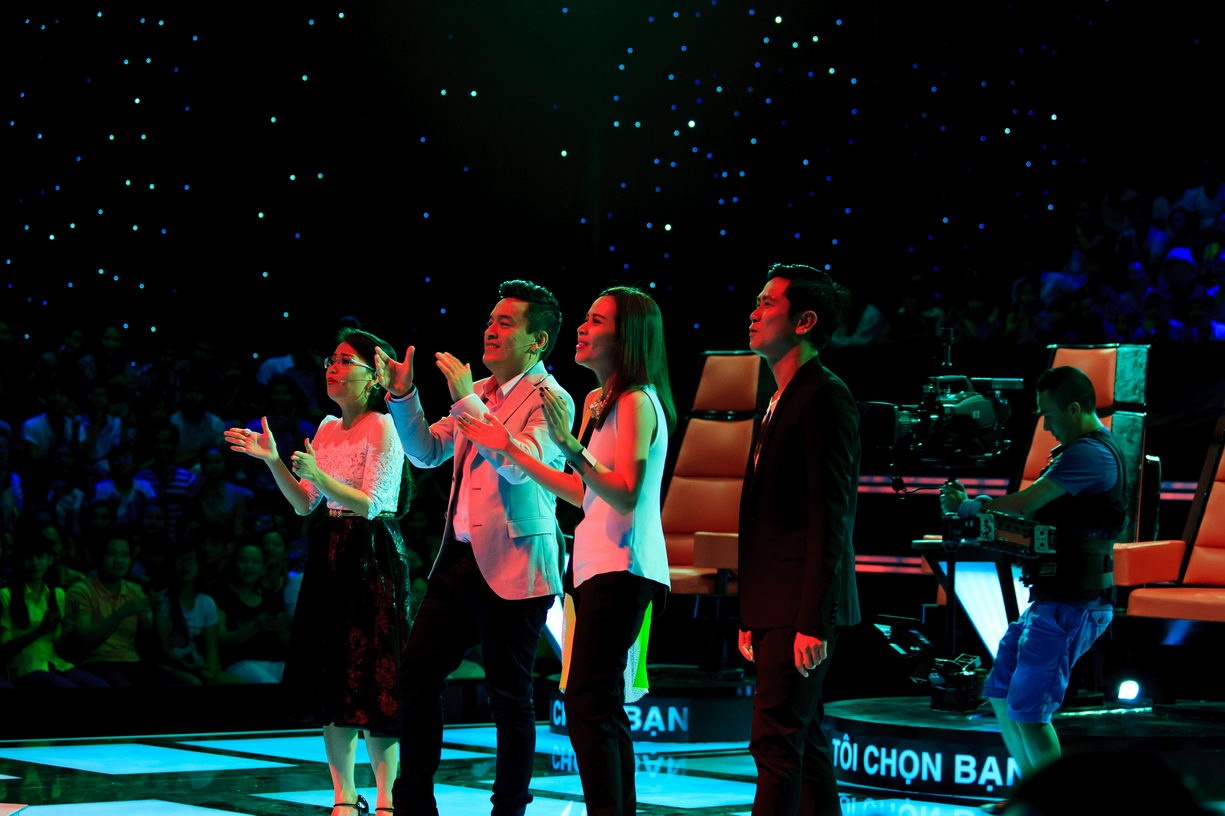 | Không chỉ được cả 4 huấn luyện viên xoay ghế chọn lựa, Đức Anh còn lôi kéo được vợ chồng Giang - Hồ, Cẩm Ly và Lam Trường cùng rời khỏi ghế nóng, tiến lên sân khấu và nhiệt tình múa minh họa. |