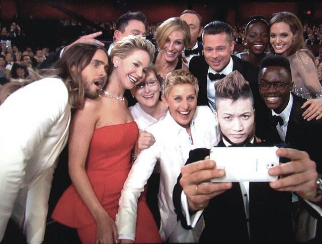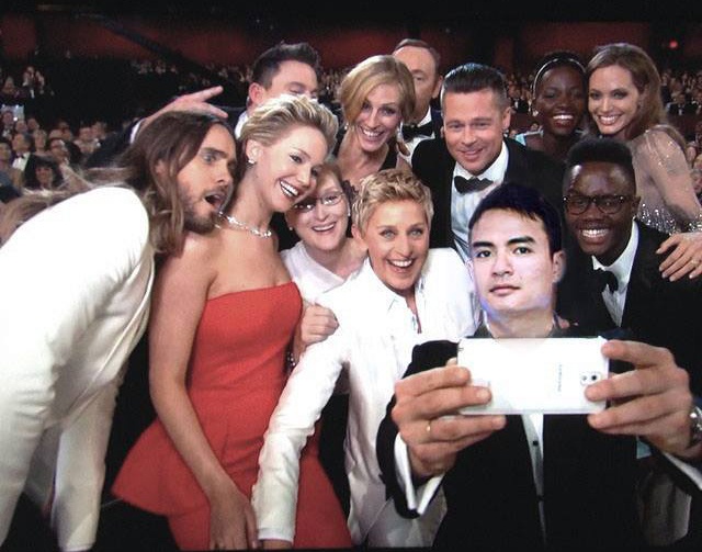 | Bức hình do Bradley Cooper chụp được MC của lễ trao giải Oscar là Ellen DeGeneres chia sẻ trên Twitter cá nhân cách đây ít giờ. Người dẫn chương trình đồng tính này khẳng định đây là bức ảnh "đẹp nhất từ trước tới nay". Nhưng cô không quên bày tỏ chút tiếc nuối: "Ước gì tay của Bradley dài hơn một chút" (ý để chụp thêm được nhiều sao trong hình hơn). Sau khi bức hình này được chia sẻ lên tài khoản Twitter của Ellen, mạng xã hội này gần như bị sập bởi có quá nhiều người re-tweet. |