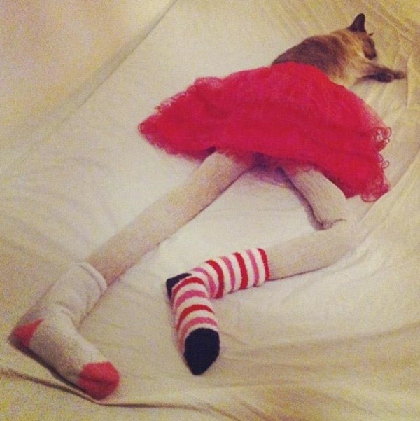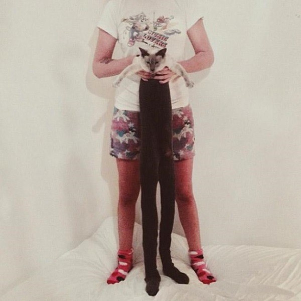 | Chỉ cần sáng tạo một chút với những chiếc quần dài hay tất chân, nhiều người đã biến hóa mèo cưng của mình thành những cô mèo xinh đẹp với "đôi chân dài miên man". |