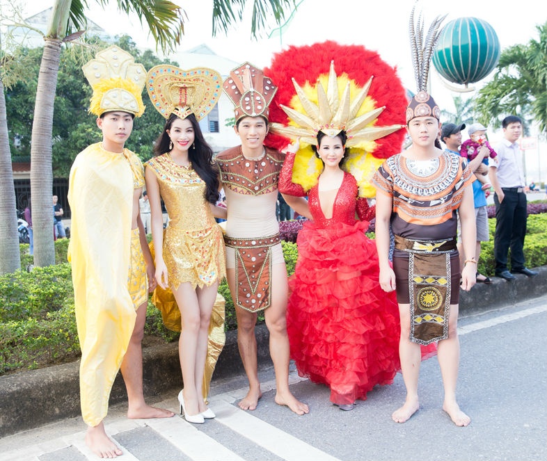 | Trong hơn một giờ đồng hồ, dàn người mẫu cùng với nhiều diễn viên quần chúng trong những bộ đồ lộng lẫy, sặc sỡ đã diễu hành qua nhiều tuyến phố. |