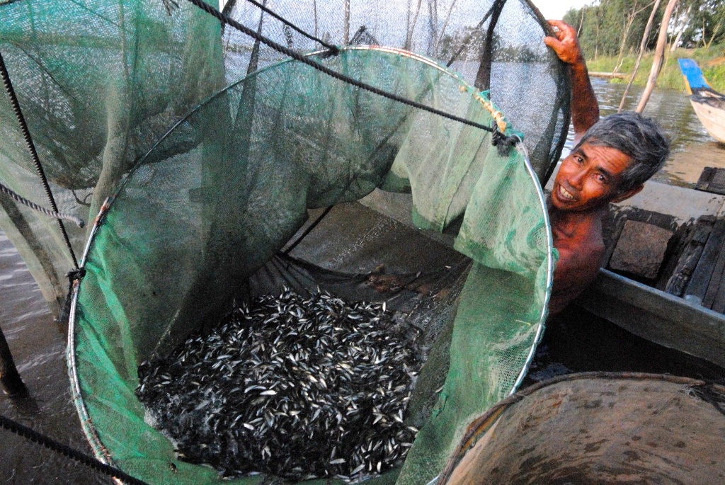 Anh Nguyễn Văn Cội, ở xã Khánh An, huyện An Phú – An Giang, chuyên đánh bắt cá linh non cho biết: “Năm nào cũng vậy, cứ lũ bắt đầu về là gia đình tôi qua Campuchia thuê đất để đặt lú cá linh. Bình quân một ngày tôi có 40 miệng lú, bắt hơn 100 kg cá. Với giá bán hiện tại là 140.000 đồng/kg, trừ chi phí cả nhà kiếm được 10 triệu đồng".