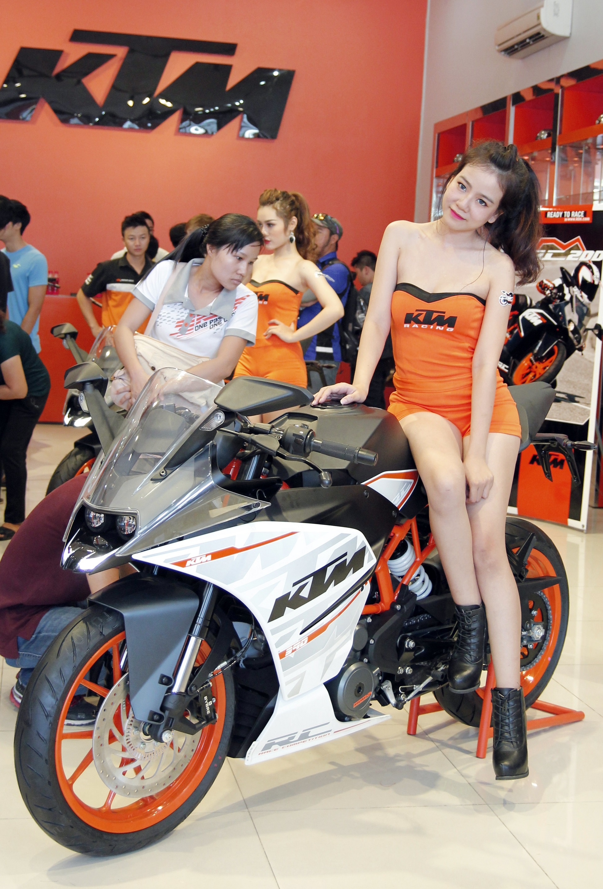 | Những chiếc KTM thường xuất hiện bên cạnh dàn chân dài trong các sự kiện ra mắt. |