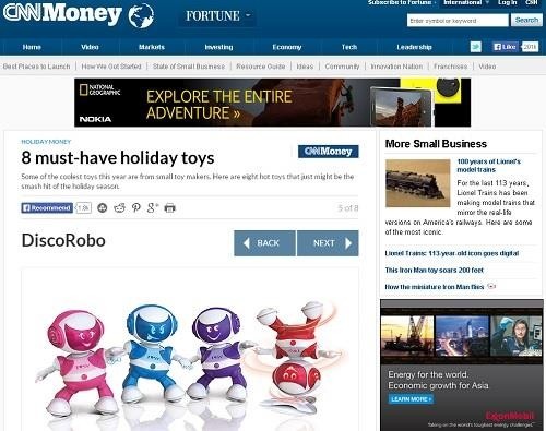 | Bài viết về DiscoRobo trên trang CNN với tựa đề "Những đồ chơi mà bạn phải mua trong kỳ nghỉ". Ảnh chụp màn hình. |