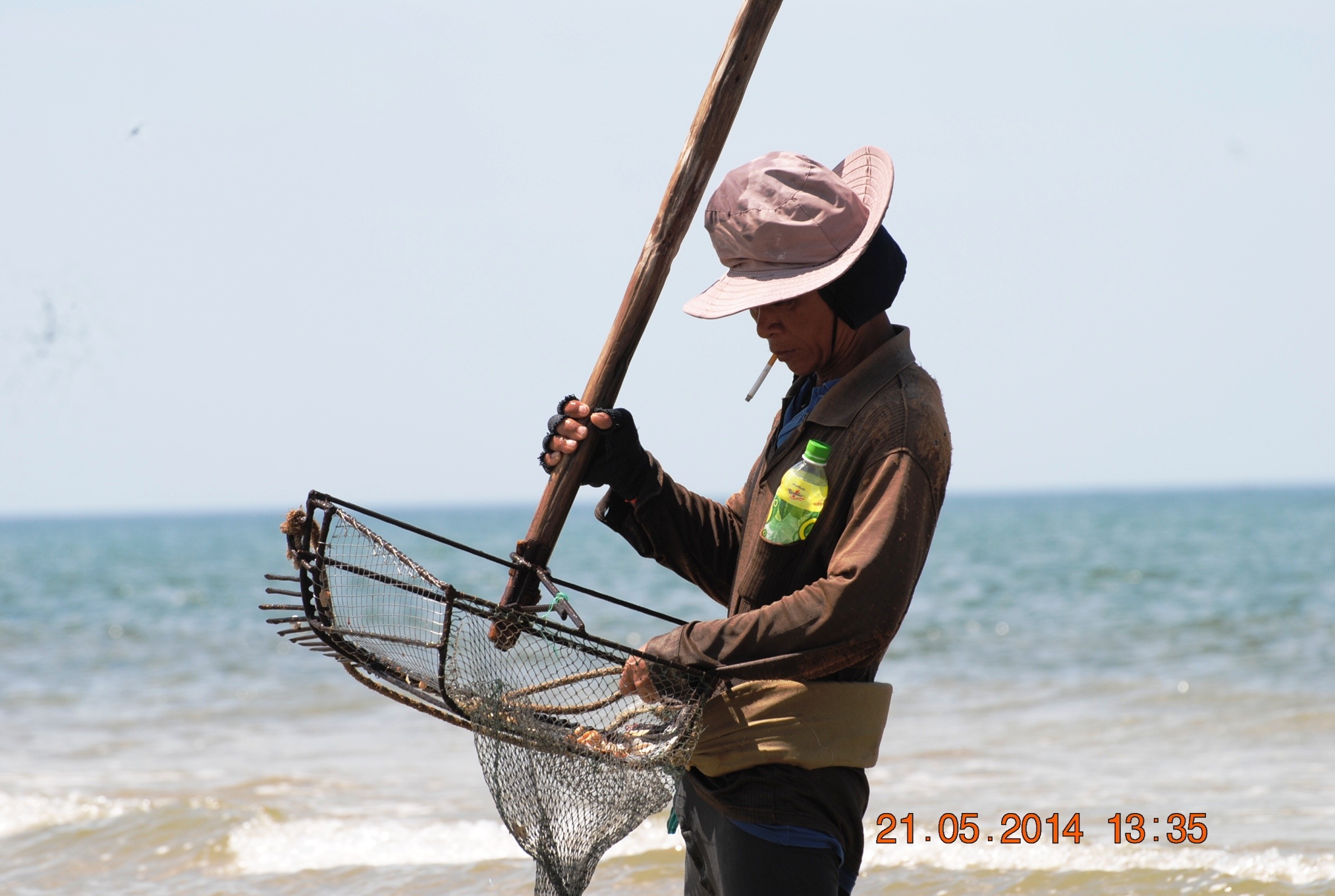 | Lúc cao điểm trời nắng nắng nóng, những ngư dân ở xã Quang Phú vội ra bãi biển để cào chép, ngao... Theo ngư dân, trời nắng càng gắt thì ngao nổi càng nhiều. |
