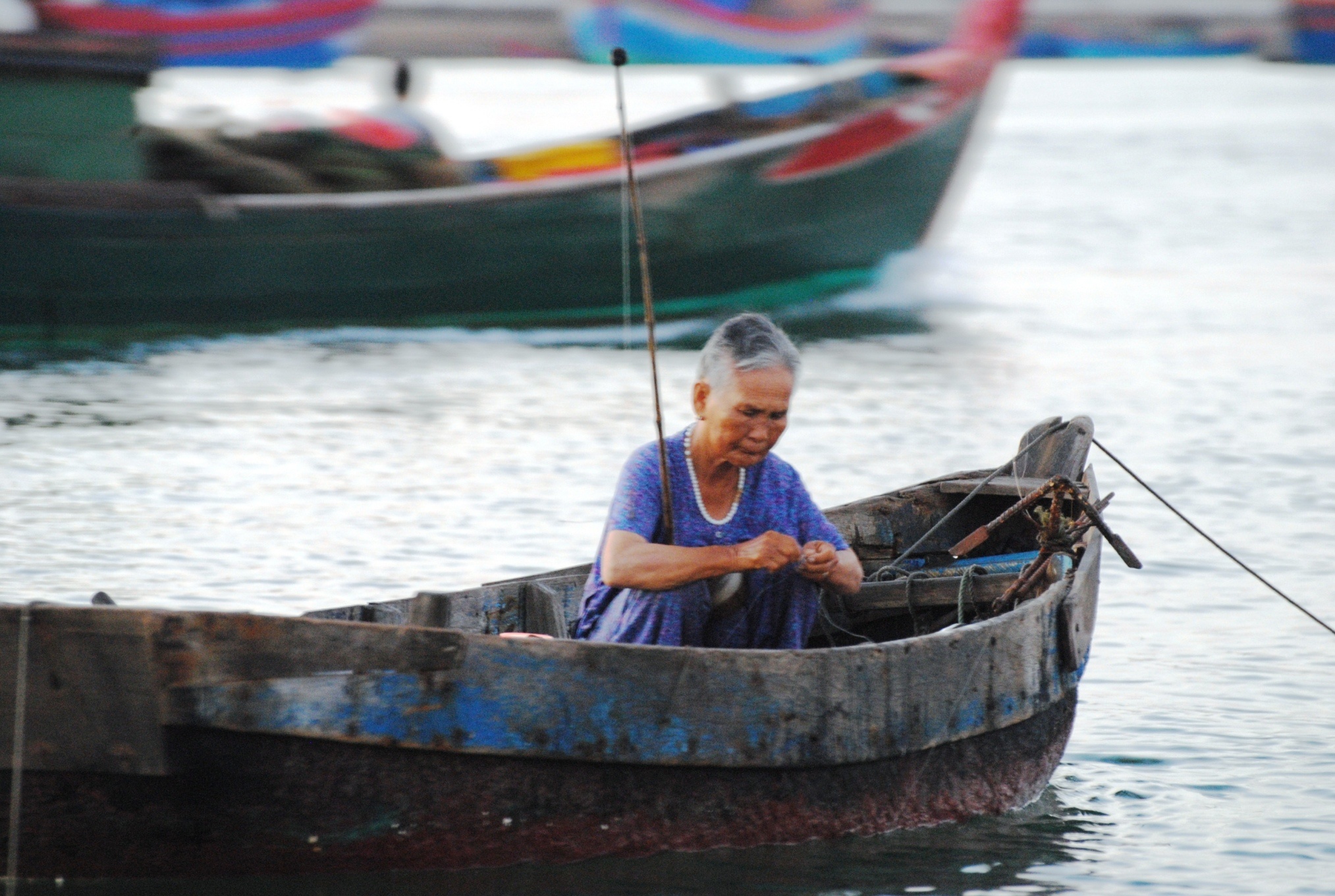 | Bất chấp trời nắng nóng, các ngư dân nghèo vẫn miệt mài làm việc. |