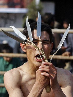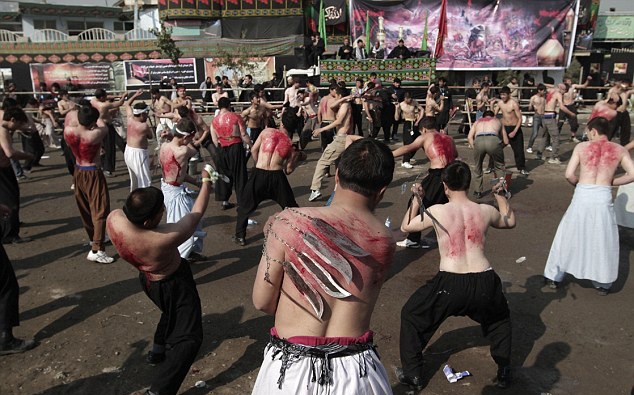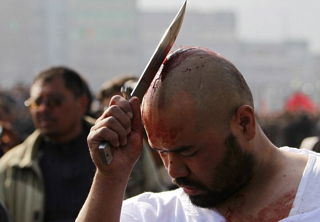 Đàn ông, thanh niên Hồi giáo ở một số quốc gia hôm qua lấy xích buộc dao tự đập vào lưng đến chảy máu để tưởng nhớ cháu trai của nhà tiên tri Mohammad.