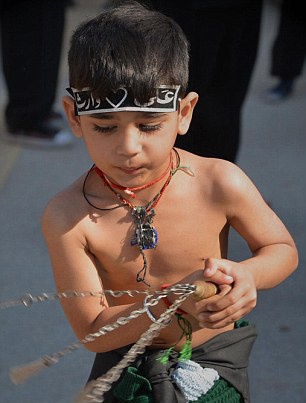 Cậu bé người Pakistan trong lễ Ashura. Ảnh: AFP.