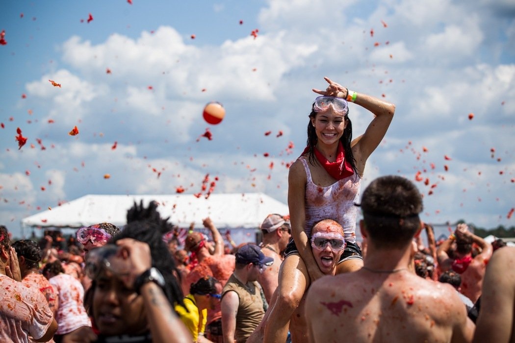 Sau những màn đấu bò, người dân có thể tham dự màn ném cà chua. Bia là món đồ uống không thể thiếu trong các lễ hội này. |