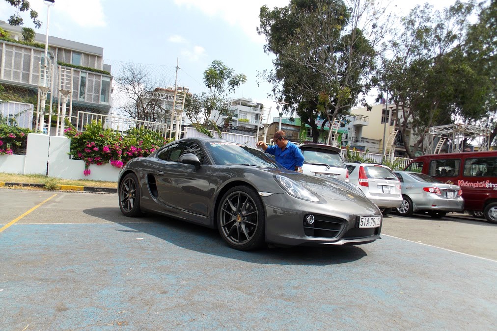 | Một chiếc Porsche Cayman sơn ghi với thiết kế đầy tính thể thao. |
