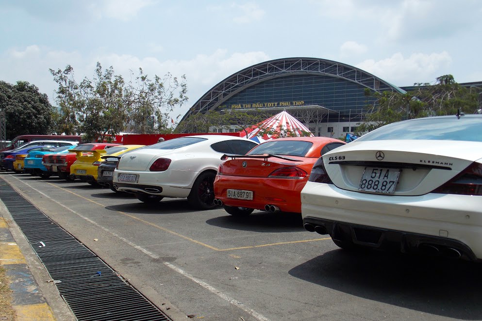 | Trong khuôn viên nhà thi đấu Phú Thọ, TP HCM, những mẫu xe thể thao đắt tiền, mang màu sắc sặc sỡ đã cùng hiện diện tạo nên điểm nhấn tại một góc đỗ xe. |
