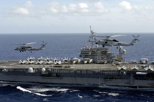 Mặt sàn của tàu sân bay lớp Nimitz có kích thước cực lớn nên nhiều loại trực thăng của Mỹ có thể hạ cánh trên đó dễ dàng. Tuy nhiên, Hải quân Mỹ chọn SH-60 Seahawk để biên chế cho các hàng không mẫu hạm. Mẫu trực thăng đa nhiệm chuyên trách trên biển có khả năng chống ngầm, chống hạm, thực hiện chiến dịch đặc biệt của hải quân, tìm kiếm cứu nạn, vận tải hạng nhẹ và hỗ trợ y tế. Chúng đóng góp lớn vào khả năng cơ động trên các tàu sân bay Mỹ. |
