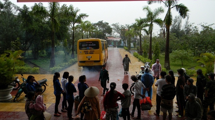 | Chuyến xe đầu tiên đưa người dân vùng biển về nhà. |