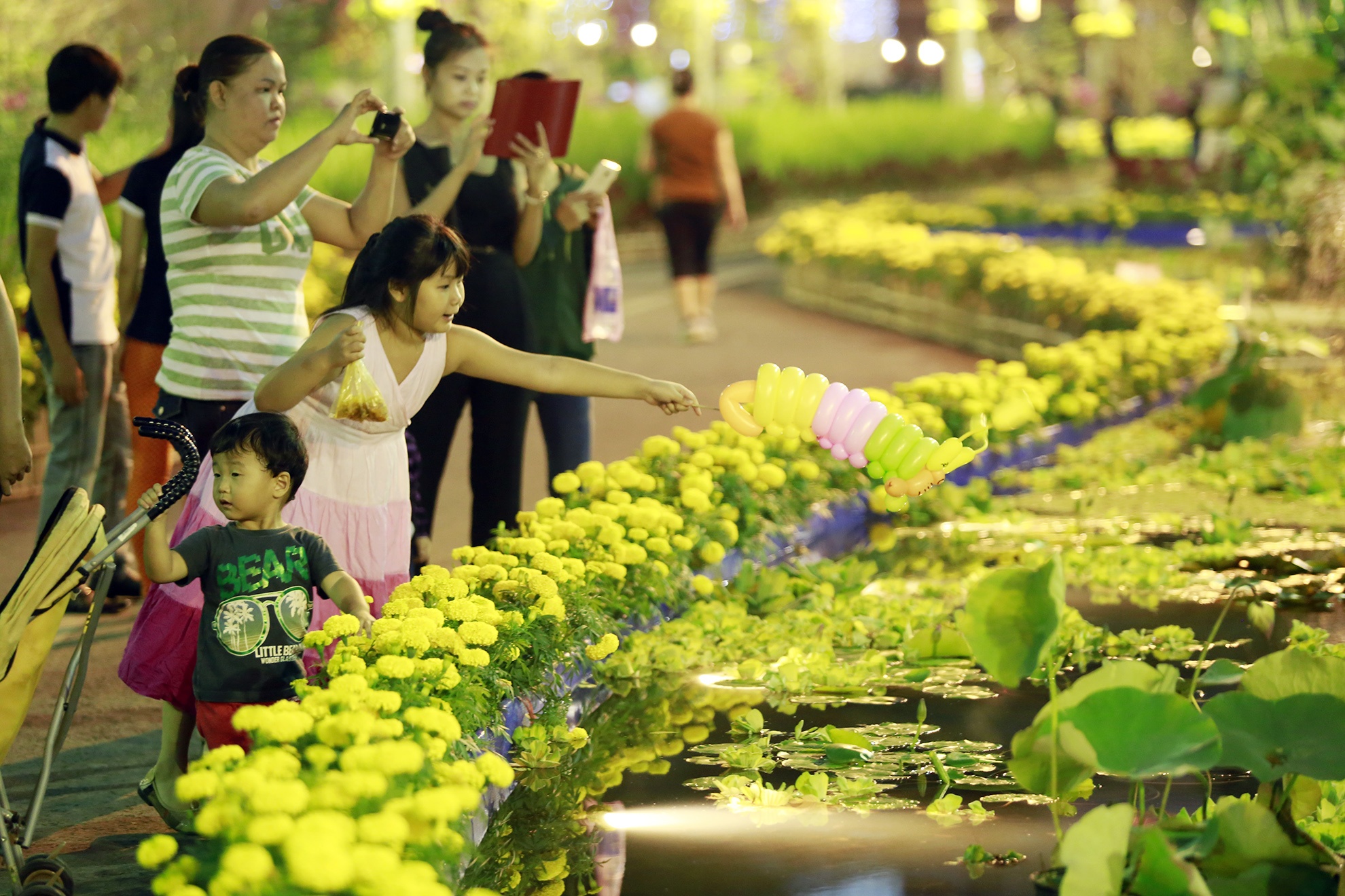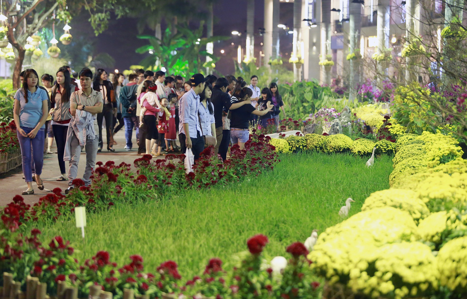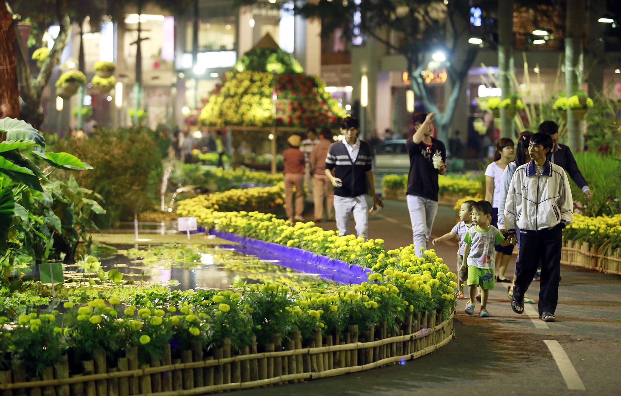 | Cùng với đường hoa Nguyễn Huệ, đường hoa Phú Mỹ Hưng là điểm đến mỗi dịp Tết đến xuân về của người Sài Gòn. |