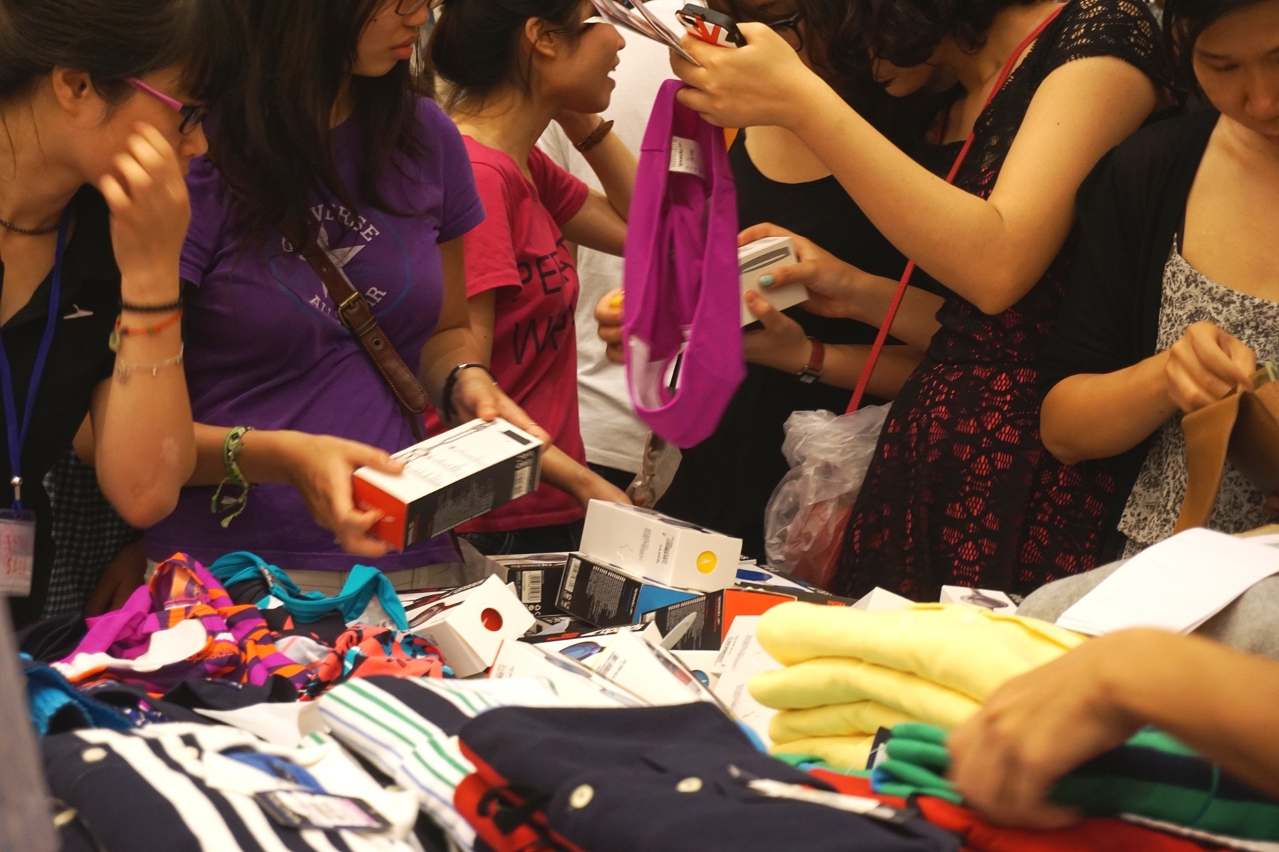 | Dù chuẩn bị tâm lý, nhưng nhiều người không khỏi ngỡ ngàng, hoảng hốt trước cảnh chen lấn, xô đẩy để được mua hàng hiệu giá rẻ. |