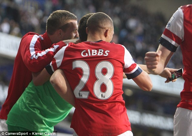 | Szczesny cùng Gibbs hào hứng xem lại những bức ảnh vừa chụp. |