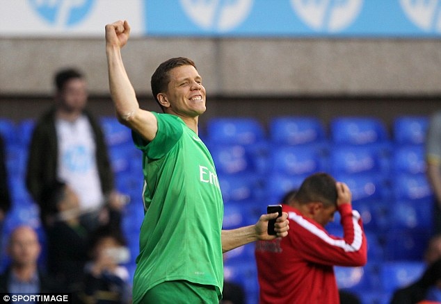 | Wojciech Szczesny nhảy lên ăn mừng chiến thắng ngay giữa sân bóng |