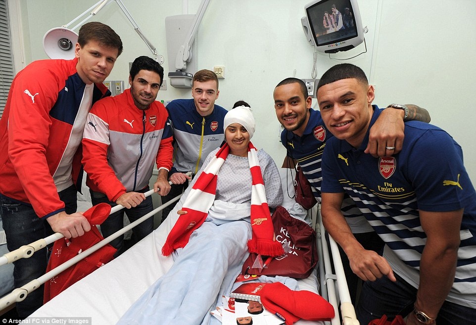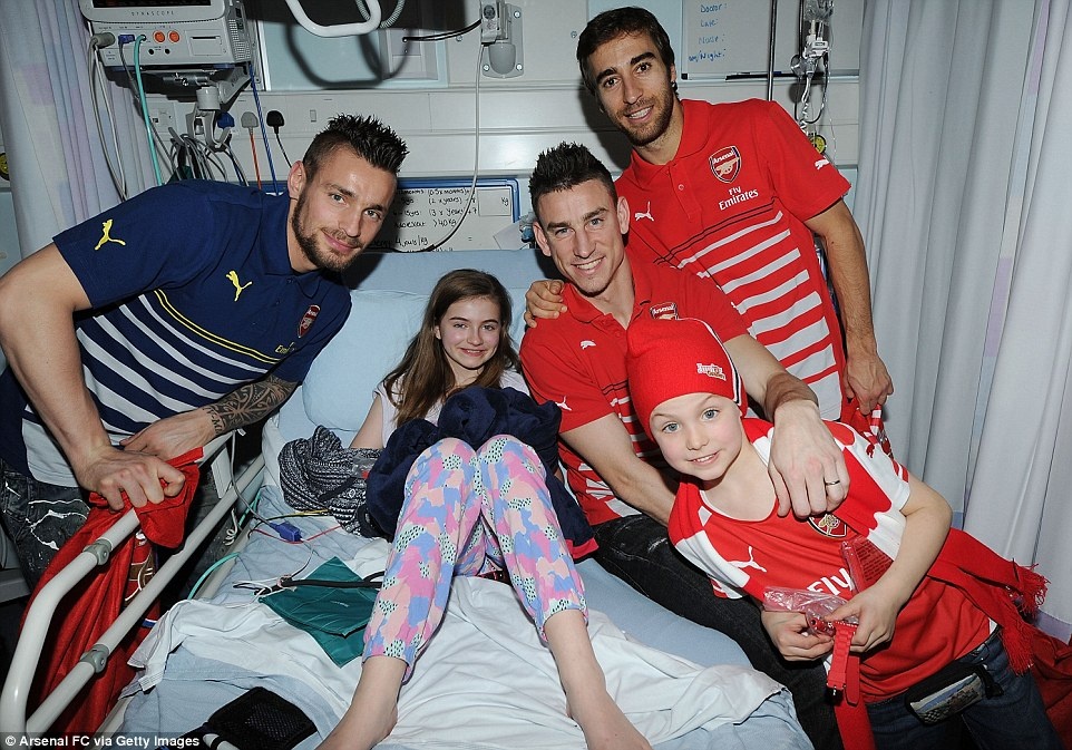 | Người nhà của các em đang điều trị tại bệnh viện rất vui với việc làm từ thiện của các Pháo thủ thành London. |