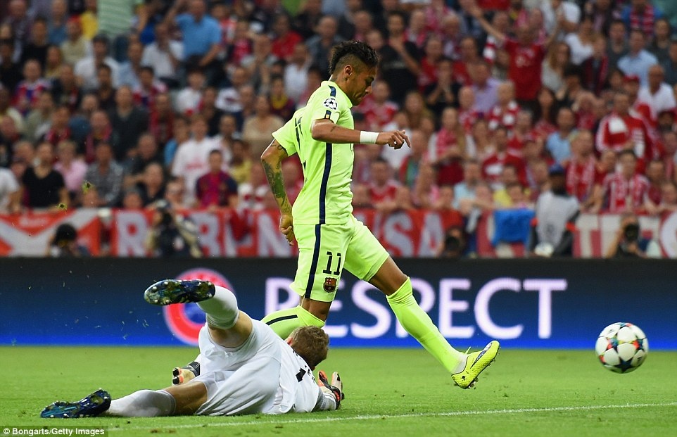 | Trong cả hai tình huống dẫn đến bàn thắng, Messi đều là người châm ngòi, Suarez sắm vai kiến tạo còn Neymar chịu trách nhiệm xé lưới Neuer. |